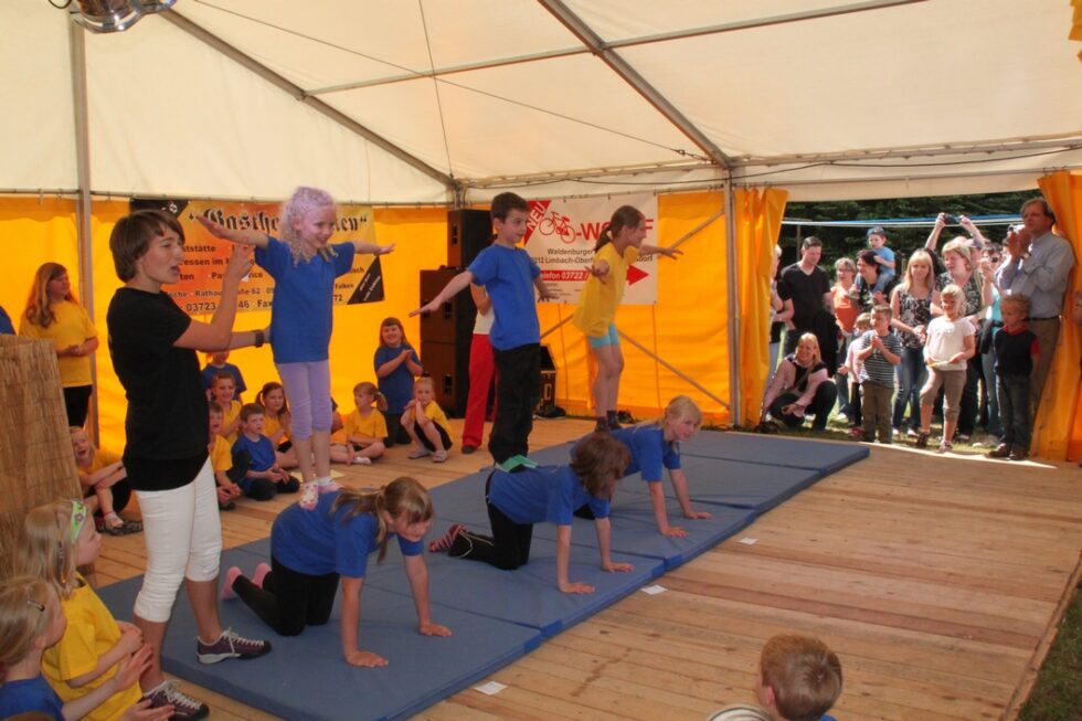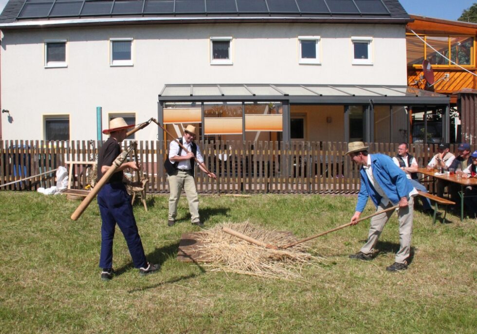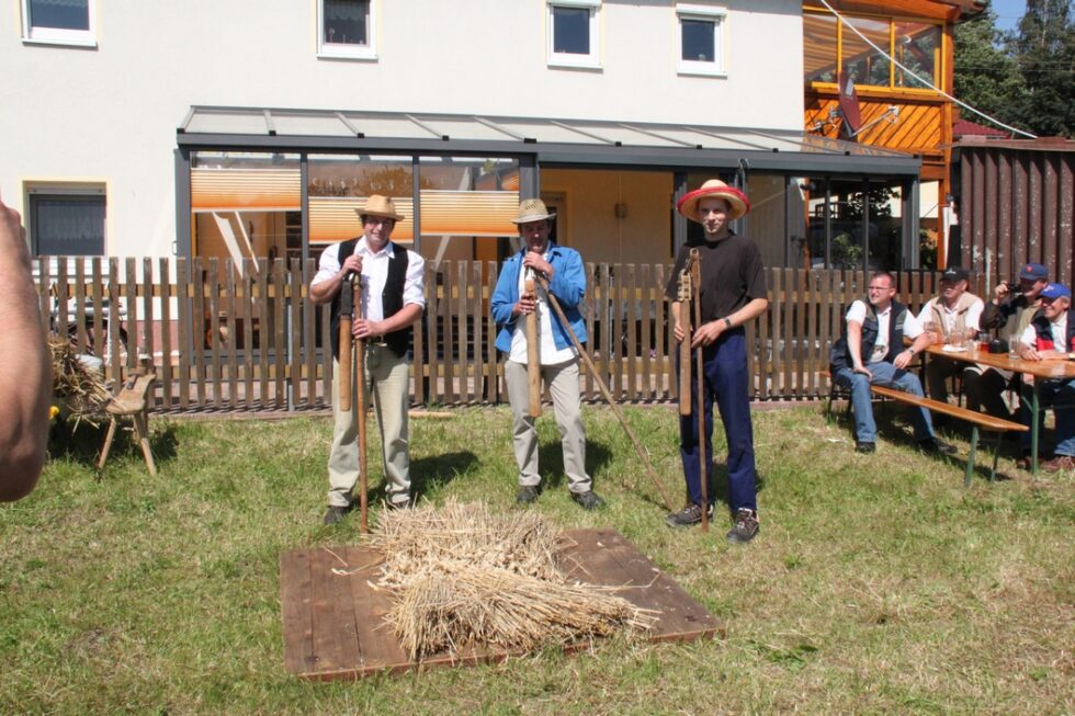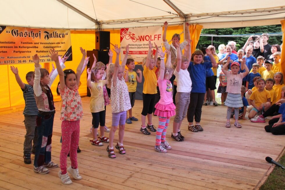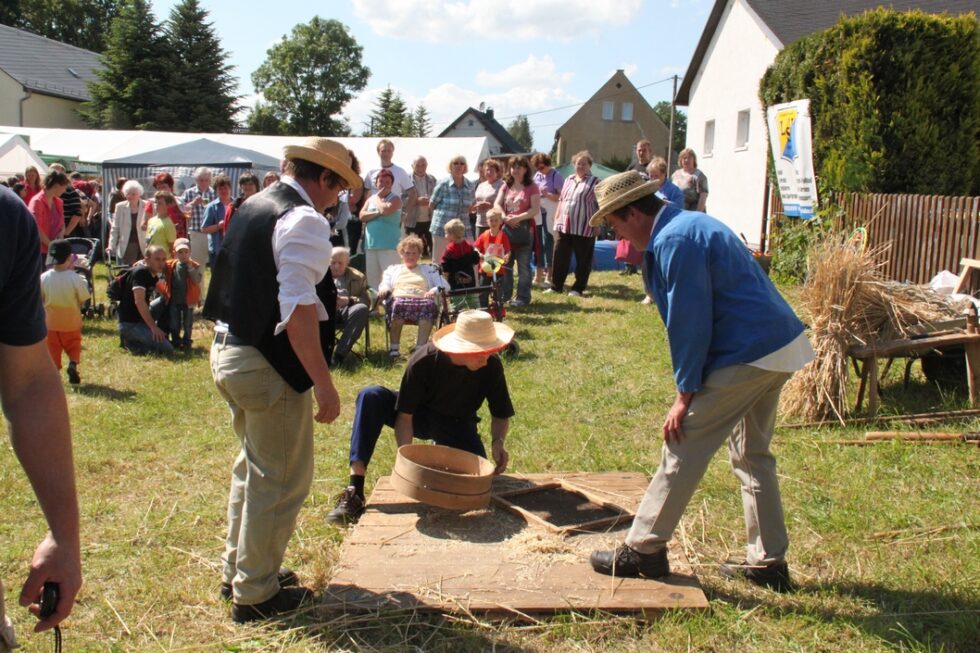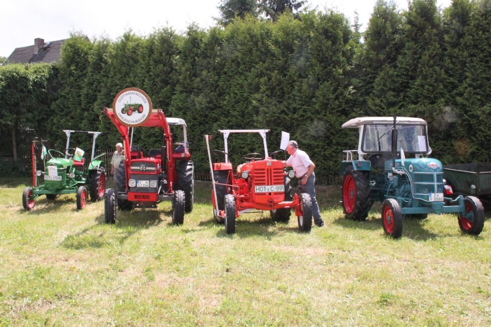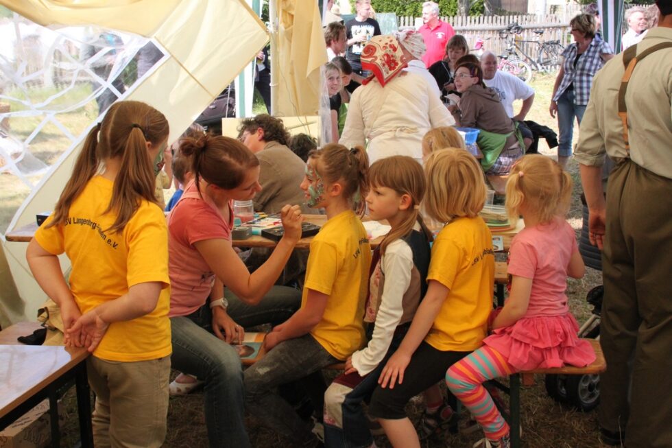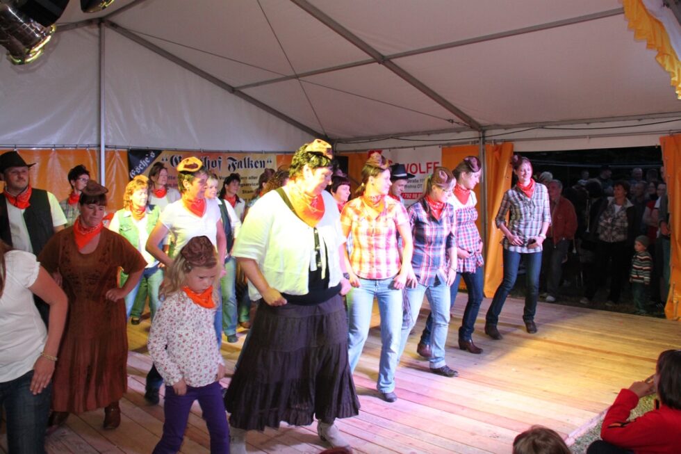 Das Festgelände mit Festzelt war bereits am frühen Nachmittag der Ort zahlreicher Darbietungen der einzelnen Vereine und Schausteller des Ortes. So wurden historische Landmaschinen vom Traktor bis zum Dreschflegel präsentiert. Der Kindergarten Falken und auch die Jüngsten des Landsportvereins zeigten ihr Können.